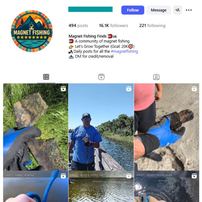 A nice Magnet Fishing Instagram account available. The account has 16k followers posting videos of extracting scrap metal from rivers. It can be easily converted to a personal or business profile. A perfect account to increase your social media presence.