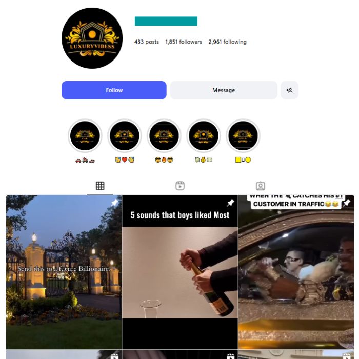A unique Ultra Rich Lifestyle Instagram account. The account has over 1k followers with premium 16% USA audience. It can be used to establish credibility for your personal or business profile.